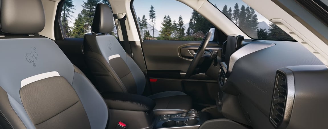 Inside, the Bronco Sport is designed for comfort and practicality. Up to five passengers can ride comfortably, and durable cloth seats ensure the cabin handles everyday wear without losing style. Cargo space starts at around 920 litres behind the rear seats, ideal for groceries, sports gear, or travel items. Fold the rear seats down, and space expands to roughly 1,846 litres, giving room for larger equipment or weekend adventure gear. With a wide rear opening and smart layout, loading and unloading is simple, keeping every trip organized and stress-free.